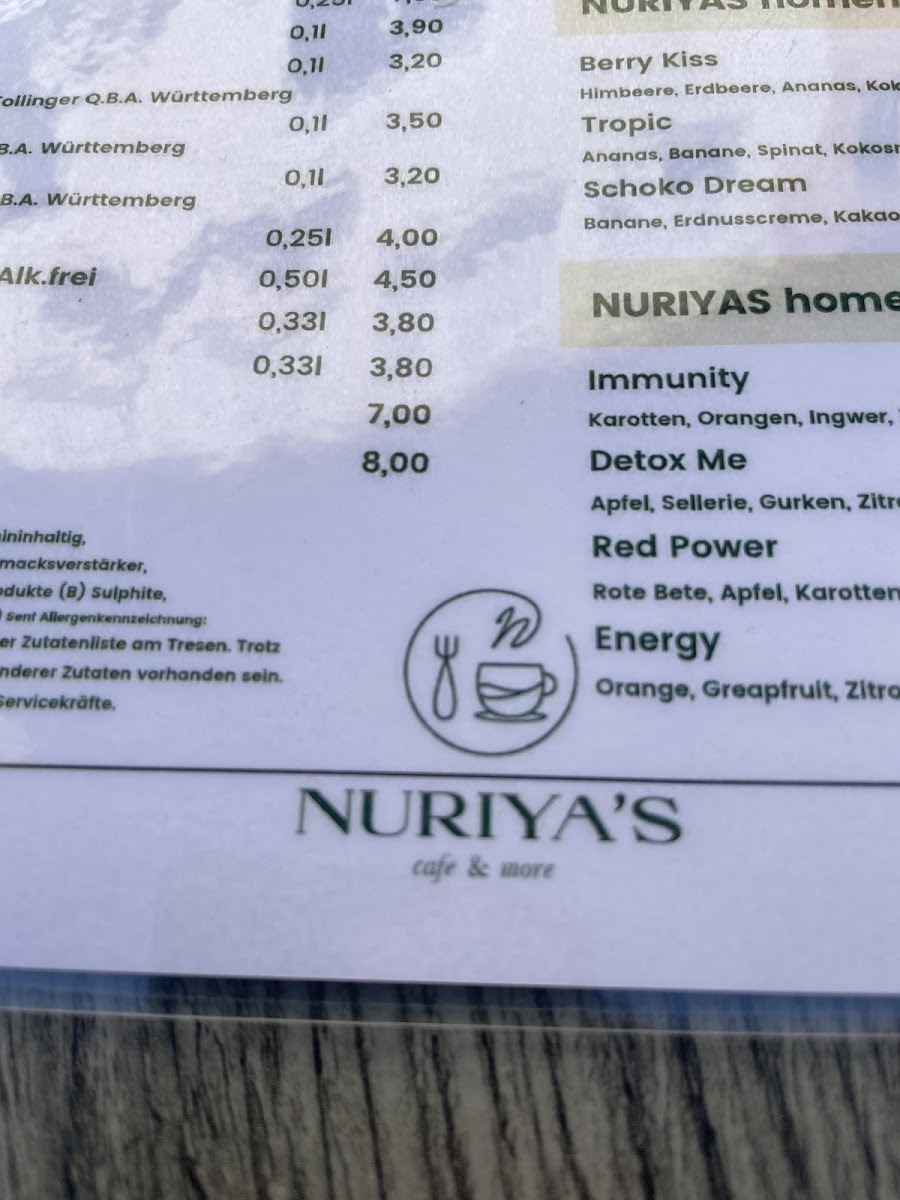 Welcome to Nuriya's Cafe & more, a delightful culinary gem nestled in the heart of Neckarsulm, Germany. This charming cafe merges the warmth of a bakery and breakfast restaurant with the sophistication of a barrister. The menu boasts a variety of unique offerings that tantalize the taste buds.